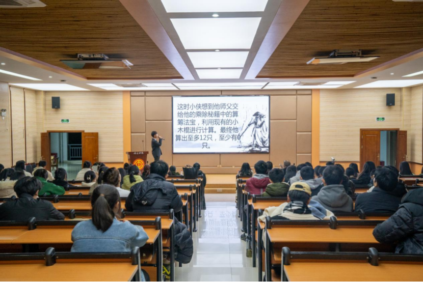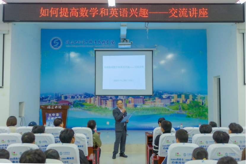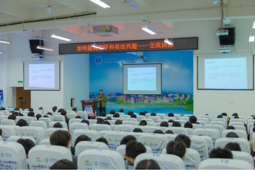 2023年11月25日,数学社、英语协会和棋类博弈社在第二学术报告厅联合举办了一场“如何提高数学和英语学习兴趣”为主题的交流讲座,本次交流讲座由数学社指导老师李德乐主持,特别邀请了英语教研室蓝建淮老师主讲,共有200多位同学参加。蓝建淮老师主要分享专升本英语面试和英语四级考试中词汇、语法、完形填空、阅读理解和写作五个方面的解题技巧和经验,与同学们共同探讨,给同学们指点迷津,让同学们找出适合自己的学习方法和技巧。