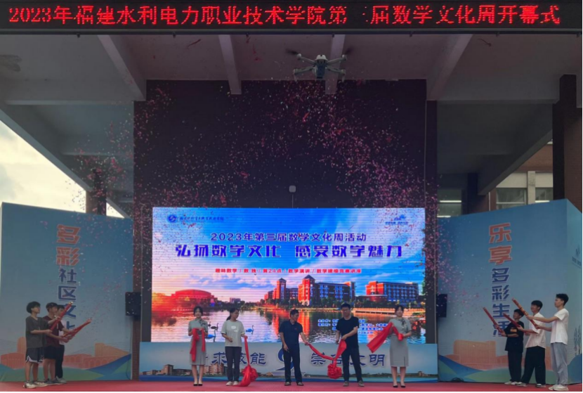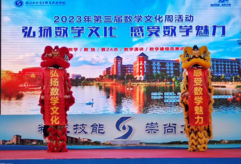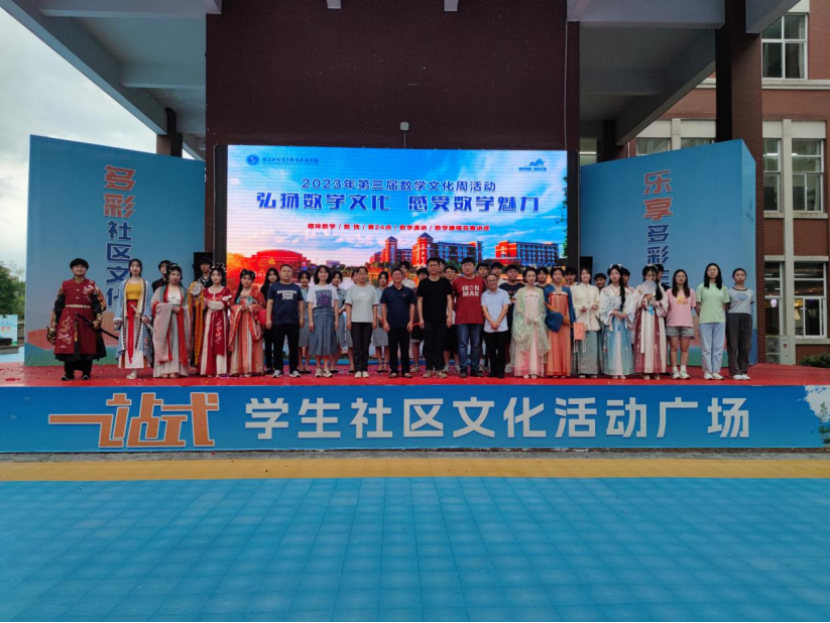 2023年5月20日由校团委、公共基础部主办,学生社团联合会、数学社、大数据应用与研究社、琼剧霓裳华服社、桌游推理协会承办的“弘扬数学文化.感受数学魅力”第三届数学文化周活动开幕式在学校小舞台举行。活动现场还邀请了弦念吉他社、龙狮协会表演精彩节目,赢得在场所有人的阵阵掌声和一致好评。本次开幕式的成功举行也为接下来的文化周系列活动取得一个好彩头 。