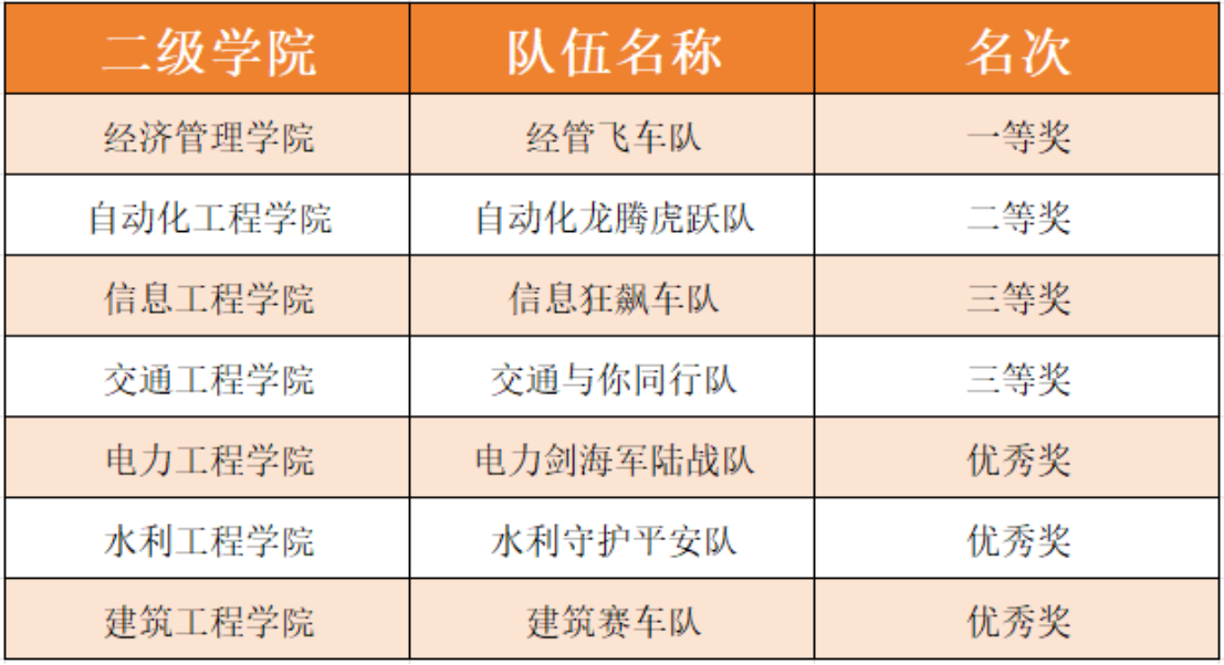 通过激烈角逐,经济管理学院凭借高超的技巧和完美的发挥成功夺魁。自动化工程学院荣获二等奖,交通工程学院、信息工程学院分别荣获三等奖。