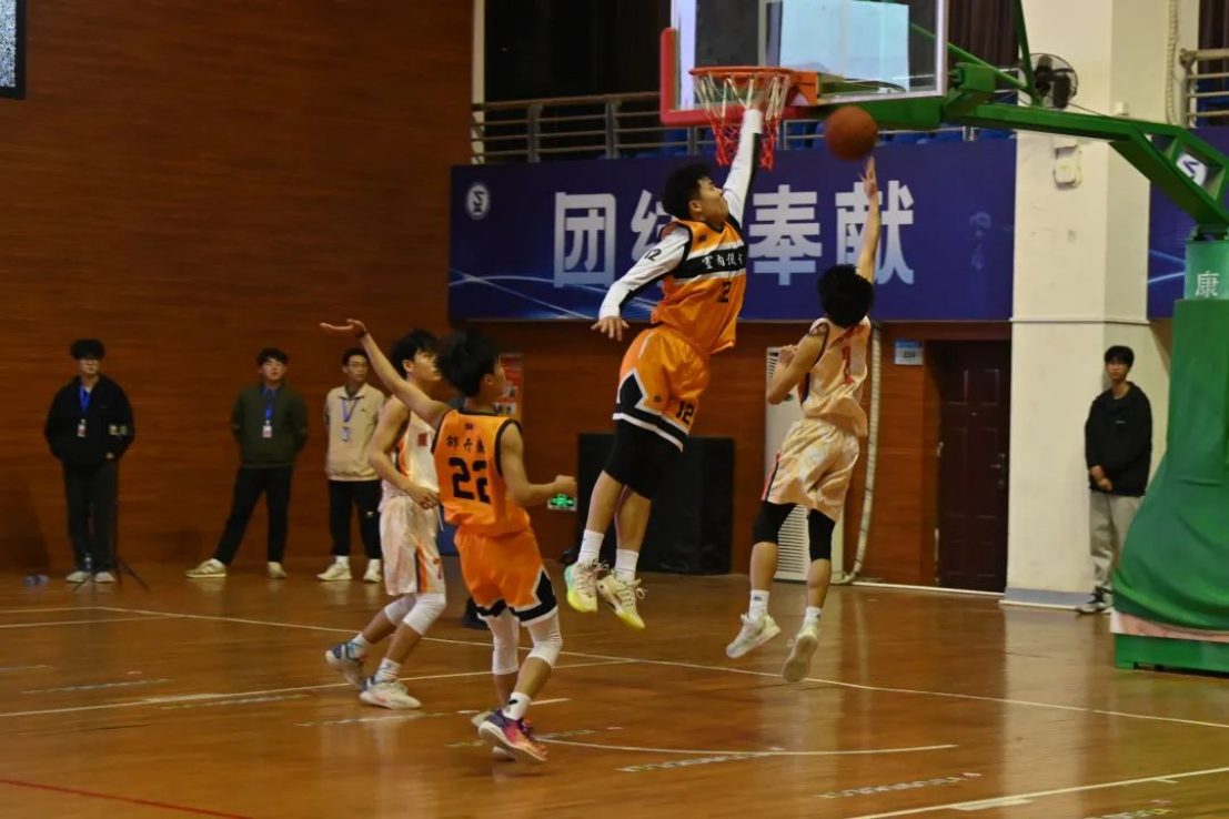 1月6日晚,学校第二十届“校园杯”篮球赛总决赛在路港体育教学馆火热开赛。随着裁判员的一声哨响,紧张刺激的篮球赛拉开帷幕。场上球员们你追我赶,攻防转换,比分紧咬不放,现场气氛异常紧张。