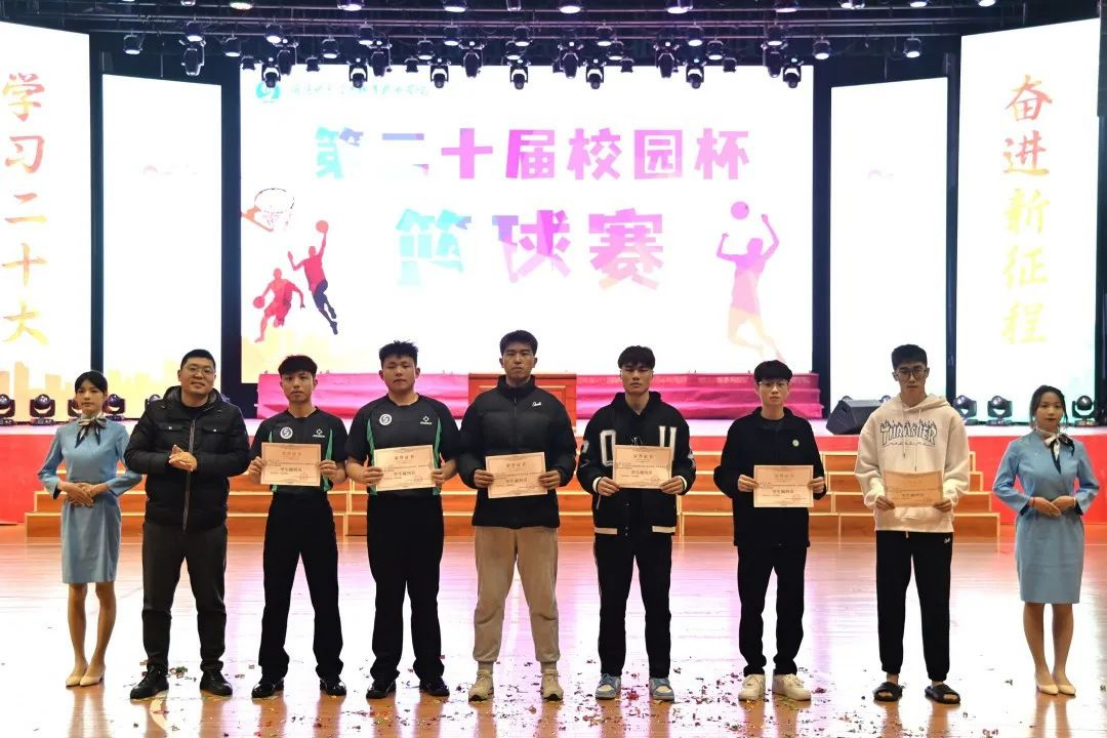 双方队员在场上发挥出了自己的实力和技巧,各种精妙绝伦的配合和出色的个人表现让人目不暇接。无论是快攻、三分还是篮下强攻,都展现出了球员们的实力和拼搏精神。比赛进行到最后一刻,双方比分胶着,气氛更加紧张。球员们全力以赴,为胜利而奋斗。校团委及体育教研室相关老师为获奖队伍及单项奖获得队员颁奖。