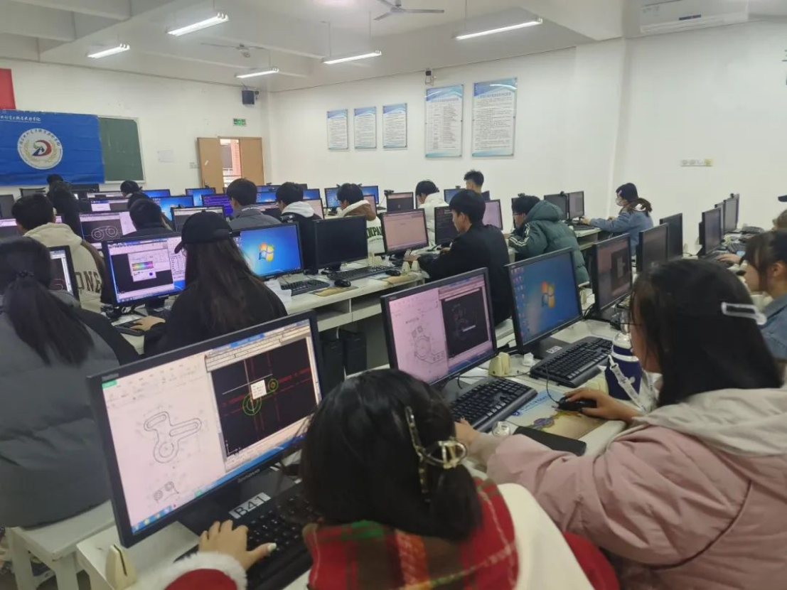 此次比赛为个人赛,每位参赛选手需独立完成规定的任务,伴随着机房此起彼伏的敲击键盘声,参赛者们纷纷展现了自己的制图水平,他们规范操作,熟练敏捷,表现出良好的技能水平和精神风貌。社团此次活动为CAD爱好者提供了一个相互学习,相互促进的交流平台,提高学生的CAD应用能力的同时,也为社团社员们创造一个理论与实践相结合的锻炼平台。