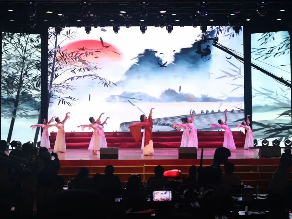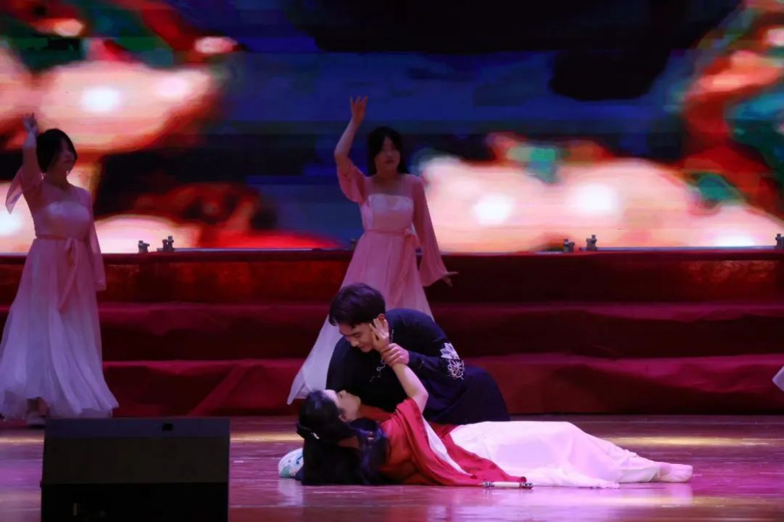 舞蹈中的男女演员们身着古代文人的服饰,以柔和的肢体语言表达着内心的情感。他们的舞姿优美,肢体柔软,展现了东方传统的典雅情韵。