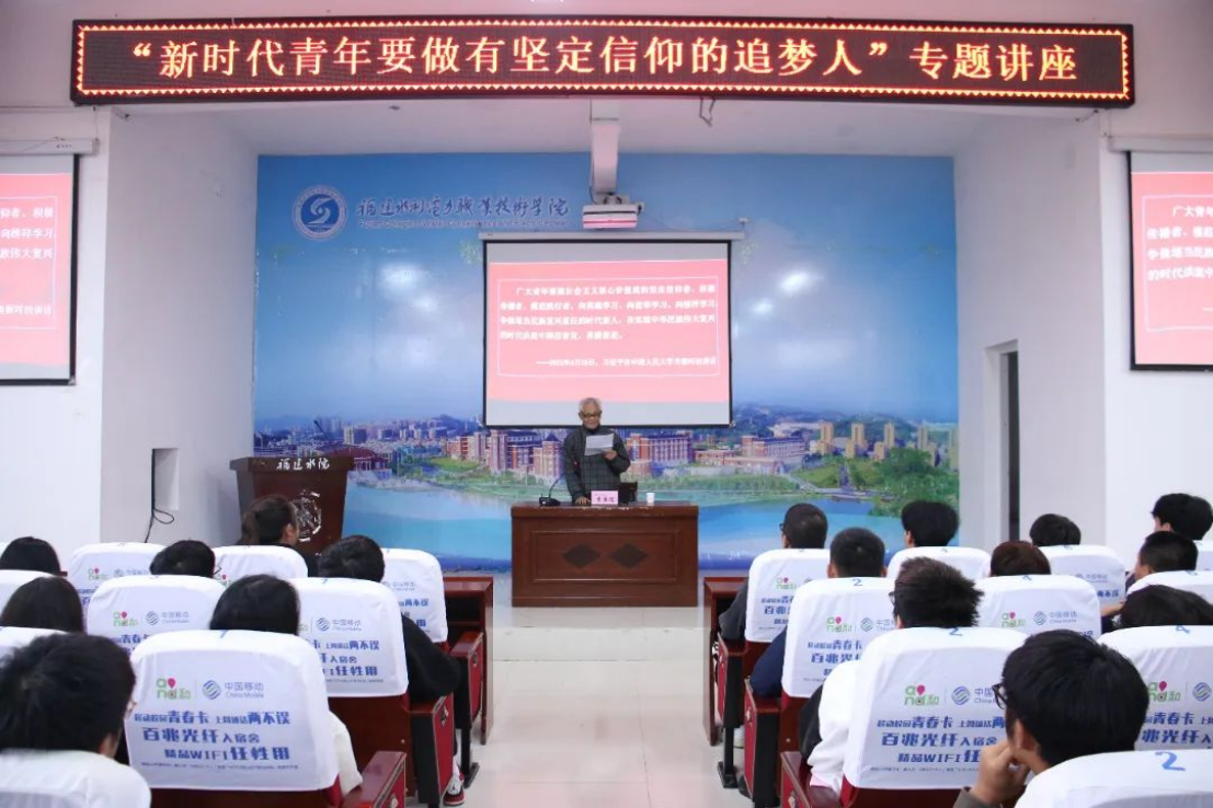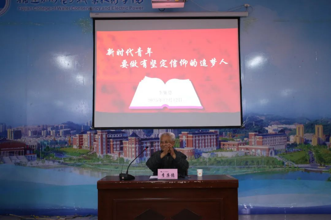 李廉德以《新时代青年要做有坚定信仰的追梦人》为主题,围绕坚定理想信念,树立正确三观;练就吃苦本领,精求专业技能;奋斗激扬青春,勇于追梦圆梦三个方面展开,并结合个人八十古来稀的人生经历,慷慨激昂地用生动鲜活的语言分享了亲学亲历亲闻、所思所想所感,勉励同学们要“知恩、感恩、报恩”,秉承“精求技能 崇尚文明”的校训精神,坚定信仰、信念、信心,勇挑重担,听党话、跟党走,用青春和热血扎实学好专业知识,练就过硬本领,做新时代的创新者和奋斗者,在实现中华民族伟大复兴的时代洪流中踔厉奋发、勇毅前行。
