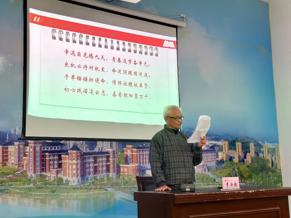 为扎实学习党的二十大精神,认真贯彻落实习近平总书记关于党的青年工作的重要思想,教育引导和关爱保护青年学子健康成长,12月12日,交通工程学院学生党支部邀请共建支部老党员李廉德入校为青年学子开讲座。入党积极分子、学生会干部、各班级主要团干300余人参加讲座。