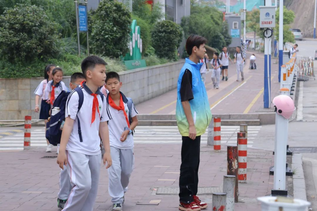 志愿者们早早来到巴溪湾小学门口,积极地开展“护学”工作,畅通学生“平安放学路”。放学高峰期时段,在学校周边重要路口、路段疏导交通,在各路口引导学生安全过马路、疏导道路车辆堵塞,预防道路堵塞和交通事故发生;志愿者还向小学生们讲解交通安全知识,提醒他们过马路要注意自身安全,增强小学生的安全意识。