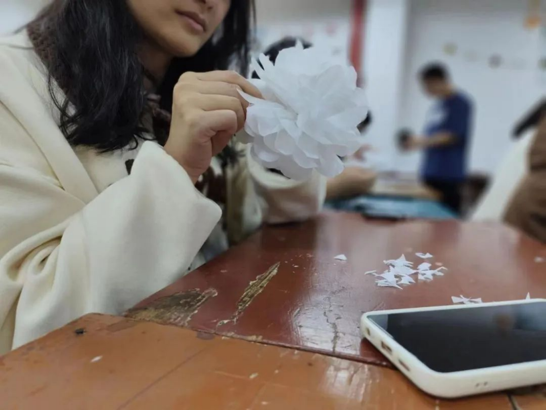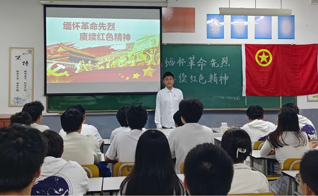 活动前,团支全体成员在教室通过朗诵清明节相关的诗歌,观看革命先烈英雄事迹视频,动手折寄托哀思的小白花等形式缅怀先烈。