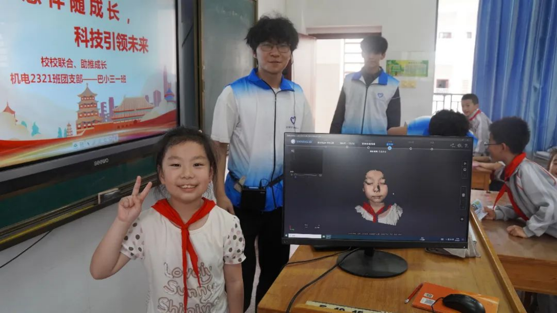 为了让小朋友们更加直观地了解3D打印技术,团支部成员们还将3D打印设备和扫描仪搬到了班级中。他们现场扫描了教室里的物品,并通过计算机将这些物品的特征捕捉下来,形成模型。随后,他们将这些模型打印出来,让小朋友们目睹了从虚拟到现实的转变过程。这种看得见的科技让小朋友们对3D打印技术有了更加深刻地认识。