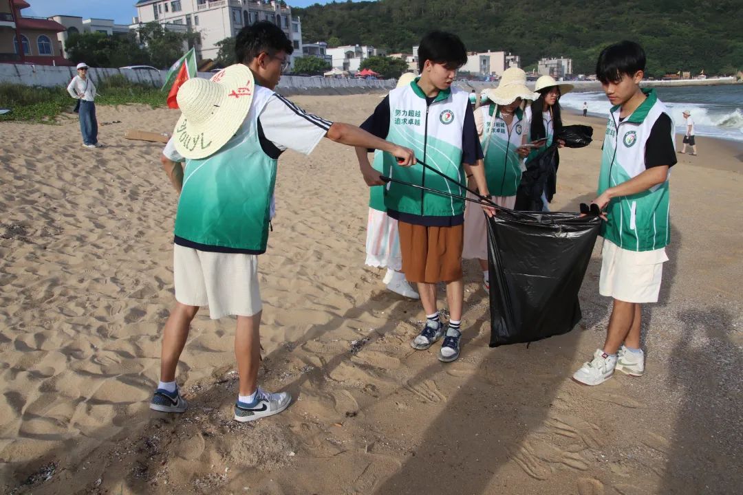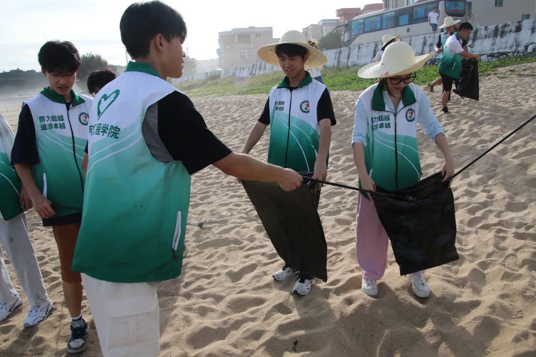 特色支教活动结束后,实践队的队员们前往达兴海大道与大肉山观景台区域进行净滩行动。队员们分散在各自负责的区域内,手持工具,认真细致地清理沙滩上的垃圾,使沙滩恢复它原本的美丽。通过此次净滩行动,实践队的队员们用自己的实际行动诠释了电力学子的环保精神。