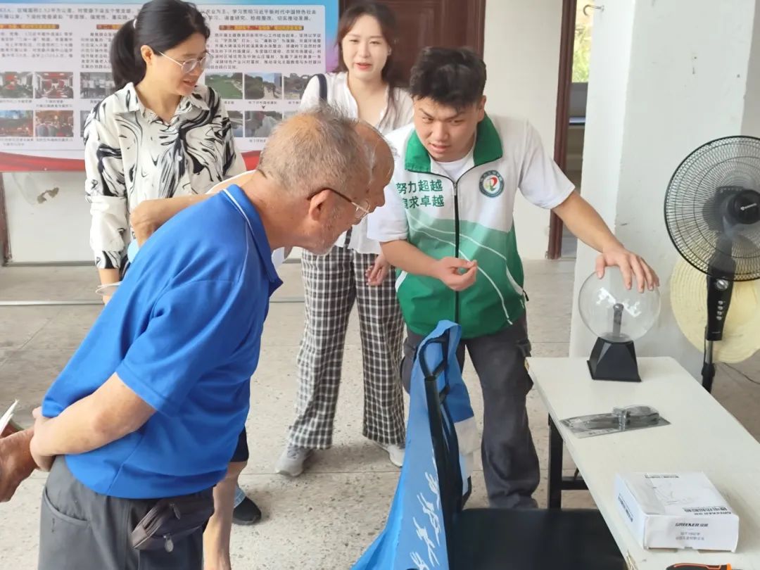 当日下午,队员们前往村内的残疾儿童和孤寡老人的家中进行探望并为特殊群体送去了慰问品,并在村庄内开展普通话普及和乡村振兴问卷调查。随后,实践队队员们在下湖村村民服务中心开展了以水果电池等益智游戏以及美育教育等系列支教活动。