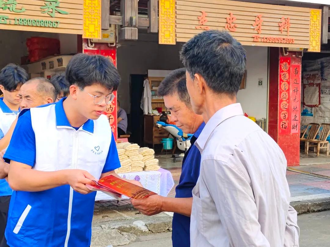 7月15日上午,实践队抵达青水畲族乡集镇,在指导老师的带领下,分组开展了一系列宣讲活动。队员们手持宣传册,用积极热情的宣传态度向村民推广普通话、普及征兵和高校资助政策。