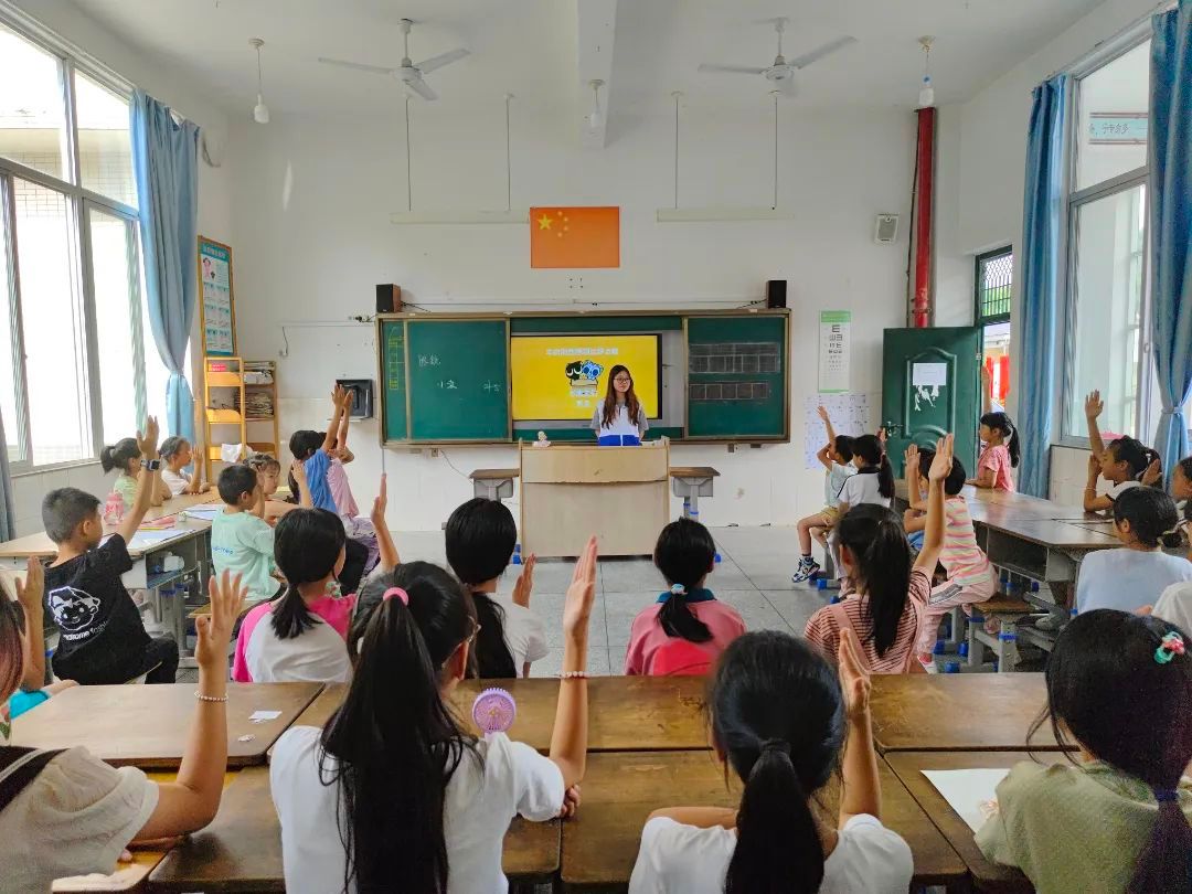 下午,队员们前往民族中心小学,开展了以生活常识科普为主要内容的知识宣讲小课堂活动。课堂内容包括网络安全、防诈知识、用电安全、知识科普等方面,队员们通过有奖竞猜、互助问答等方式寓教于乐,让孩子们在欢乐中收获知识。小课堂结束后,队员们带领孩子们一起体验非遗手工制作,活动现场一片欢声笑语。