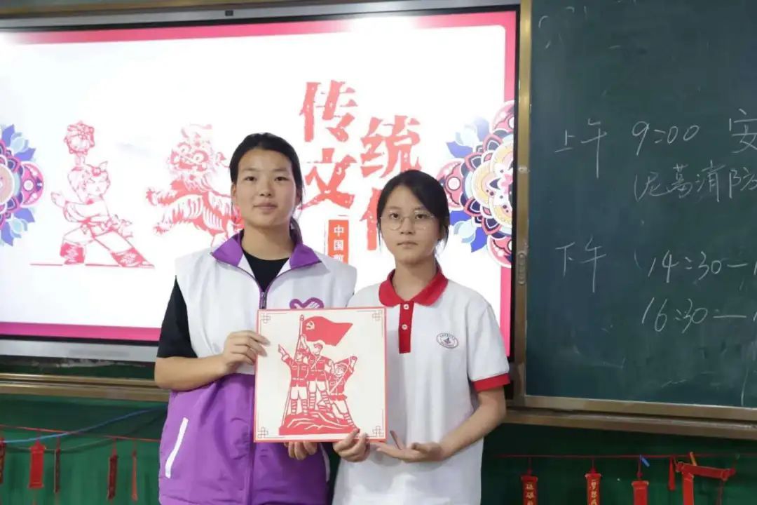 志愿者为营员们讲述青花瓷的历史,梳理青花瓷的制作流程,清楚详细地介绍青花瓷的瓶形、花纹,与营员们一同发挥创意,设计平面纸质青花瓷,描画白底蓝纹之间,素雅、质朴的中国传统美学魅力尽显。此外,志愿者带领营员们用剪纸传廉韵,用巧手颂党恩,“廉”“永远跟党走”“嘉兴红船”等主题剪纸所承载的精神价值,让营员们在传承优秀传统文化的同时,也接受了一场精神的洗礼。