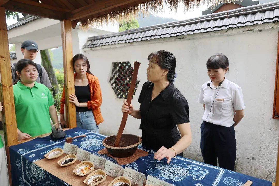 随后,队员们来到邱彩立家,聆听她深情讲述习近平总书记的“擂茶情”。 1997年4月,时任福建省委副书记的习近平同志来到常口村调研,并在邱彩立家中与大家一起喝擂茶、话家常。学员们深受触动,还亲手体验擂茶制作,在研磨与调和中感受指尖上的非遗魅力,并共同品尝了这碗清香四溢、承载深情的擂茶。多年来,邱彩立正是以这一碗碗甘醇的擂茶为媒,向往来游客深情讲述常口村牢记习近平总书记“青山绿水是无价之宝”的殷切嘱托,坚定不移走生态优先、绿色发展之路的动人故事。