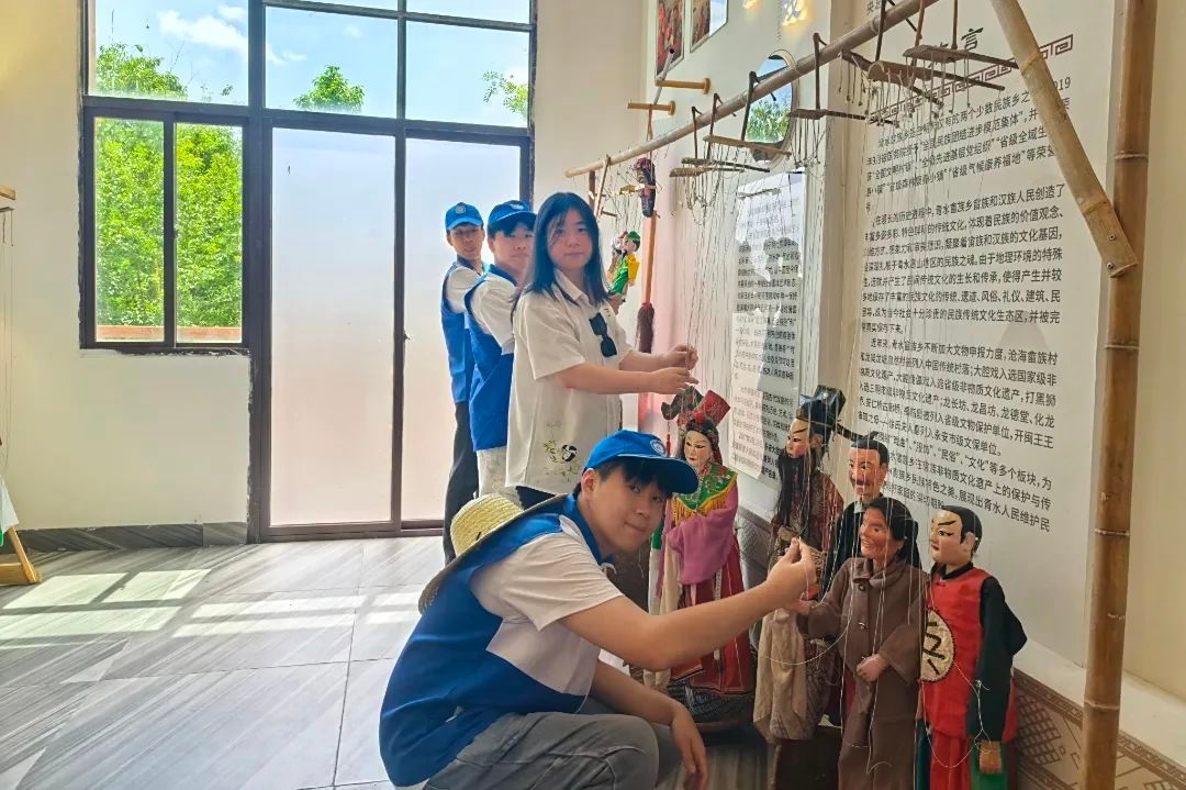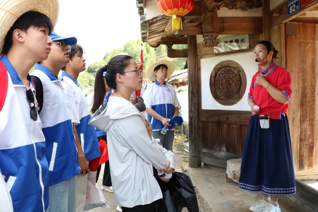实践队始终以文化调研为核心,足迹遍布青水畲族乡的集镇与村落,深度挖掘畲族文化的历史底蕴与当代价值。在民俗街,队员们先在书屋与当地团员青年座谈,从青年视角聆听畲族文化的传承故事,探讨传统与现代的融合路径;走访永宁桥,触摸古桥砖石间的历史印记,感受建筑中的民族智慧;踏入沧海畲族村,实践队聚焦传统古村落保护,学习记录建筑结构与保护现状,特别对北上抗日先遣队驻营地的红军标语群进行调研,在红色历史与古村底蕴的交织中,理解畲乡的历史担当;走进丰田村,队员们调研观鸟基地运营与大腔戏传承现状,亲身体验非遗文化在当代的传承活力。