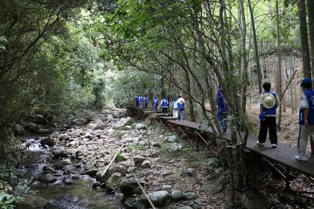实践队还将目光投向生态保护与可持续发展,深入自然与村落交汇处,探寻生态与人文共生之道。在天宝岩自然保护区,队员们走进龙头科普宣教展馆,在“物华天宝馆”认识珍稀动植物标本,“守护天宝馆”了解保护区建设历程,“和煦天宝馆”关注生态保护与社区发展的协同模式,系统学习生态保护理念。在沿生态科普研学走廊,调研“南溪溯源”自然教育路径,观察沿岸生态环境,记录自然教育标识牌内容,体会“在行走中学习”的教育理念。