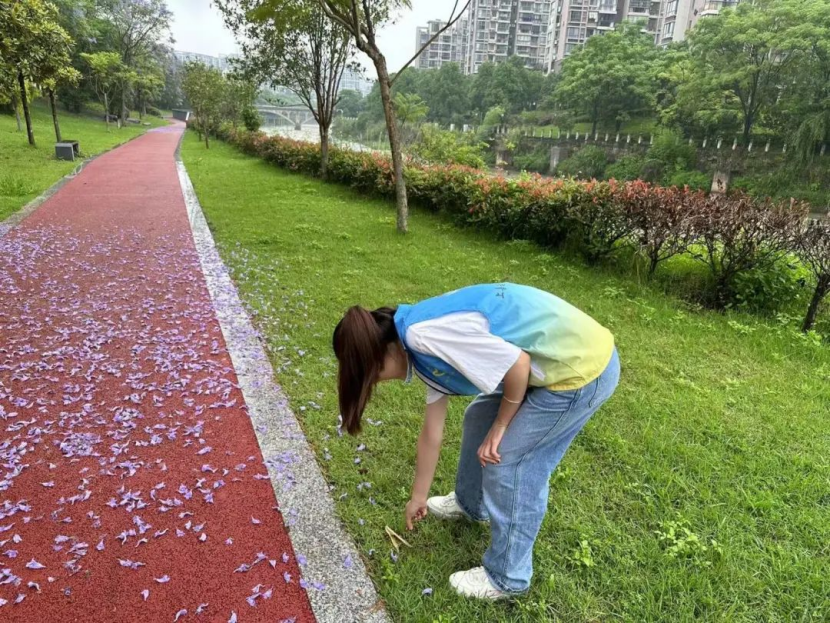团支书从当前社会垃圾分类面临的问题、垃圾分类的重要意义和如何进行垃圾分类等三方面向支部成员进行了简要的知识讲解。随后,支部成员有序分成三小队,带着自备的清洁工具,沿着巴溪河道捡拾垃圾。参加活动的同学们分工协作,相互配合将遗落的塑料袋、碎纸屑、烟头等垃圾统一进行清理。同时,在清理垃圾的过程中,遇到往来的市民群众,同学们还积极上前,宣讲护水、节水知识,引导市民群众增强护水意识、践行节水责任,营造全民护水、爱水的浓厚氛围。