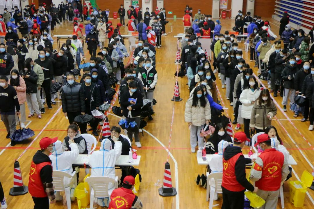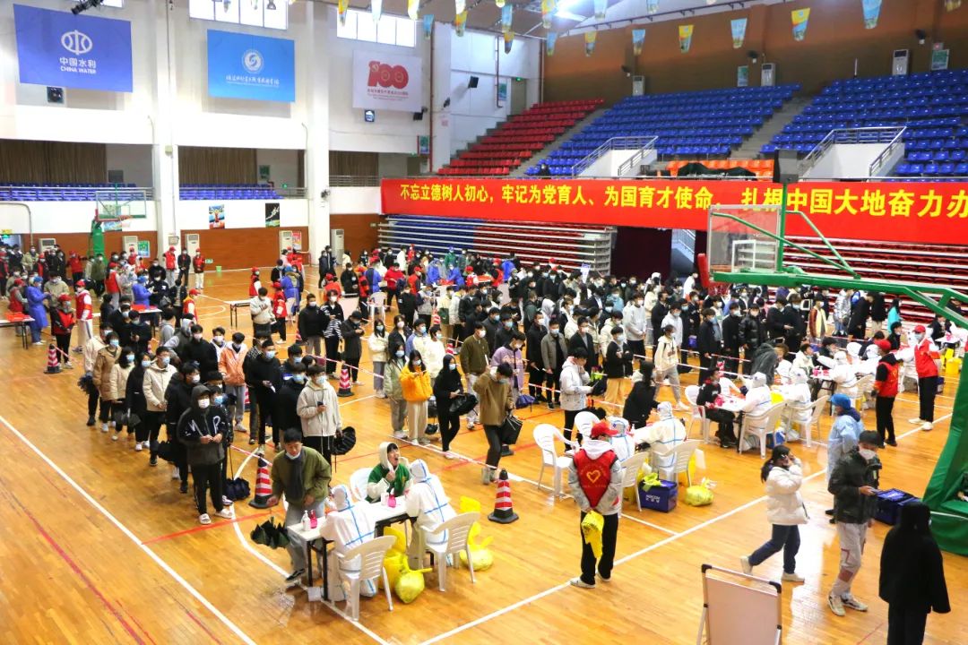 为全面筑牢开学初校园疫情防控线,全力保障师生生命健康安全和身体健康,根据学院防疫要求,2月20日,我院组织全体师生在路港体育教学馆开展全员核酸检测。院团委青年突击队及各二级学院青年志愿者100余人在近四个小时内,共同助力完成了10530名师生的万人核酸检测。
