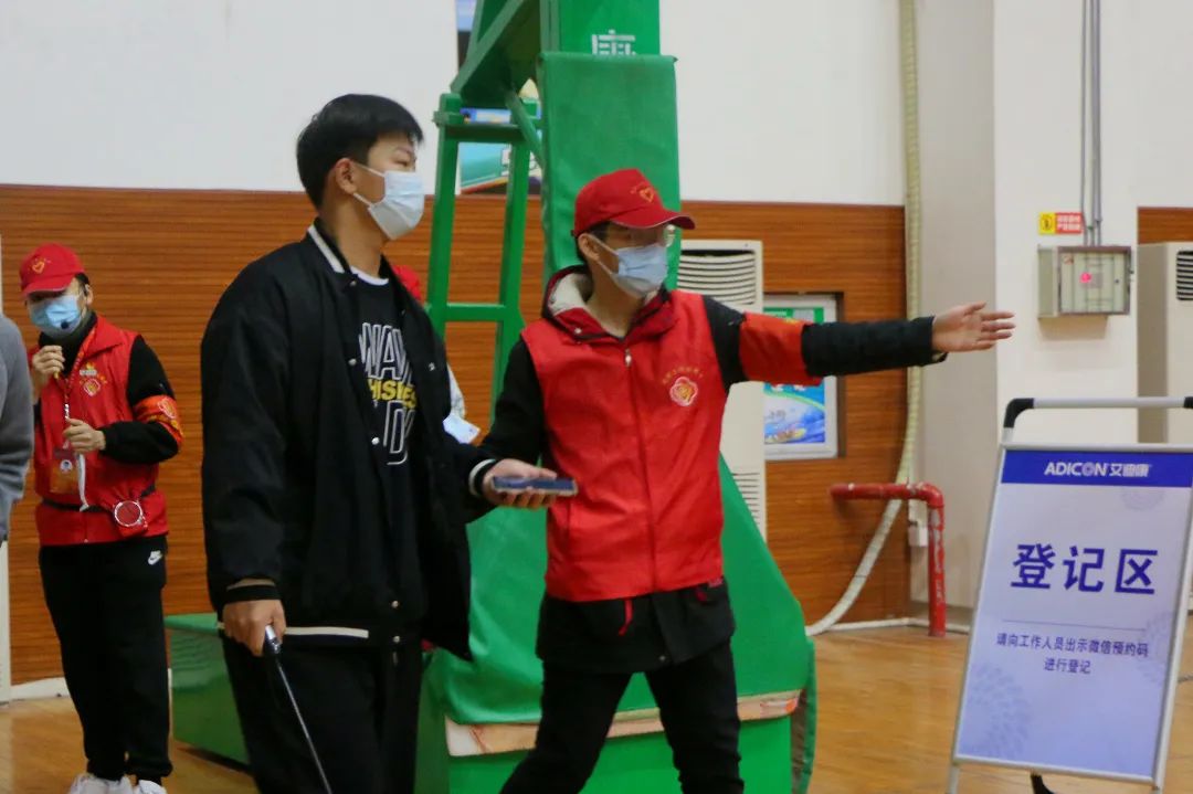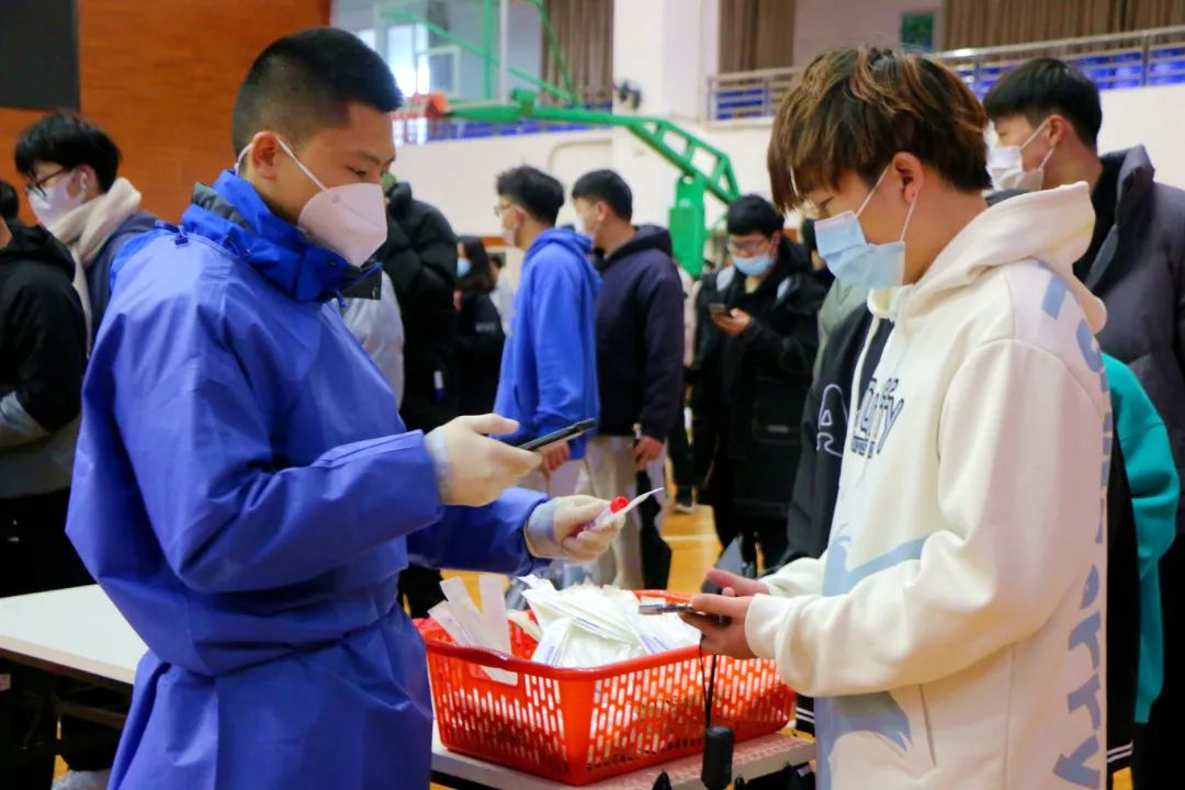早前,院团委于19日便对所有参加助力的青年志愿者们进行了分工培训。核酸检测采样于20日上午八点半开始,师生分二级学院、分班级、分批次进行检测。万人核酸检测的现场,对每一名防疫工作者来说都是巨大的考验。在志愿者们的耐心细致地指引下,核酸采集现场秩序井然,每一位排队受检人员全程佩戴好口罩,依次核验二维码,信息登记确认后,由医务人员进行专业的核酸采样操作。
