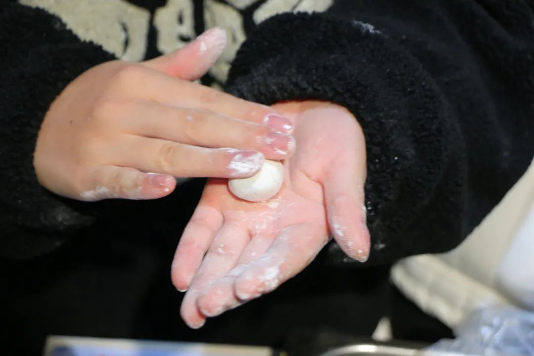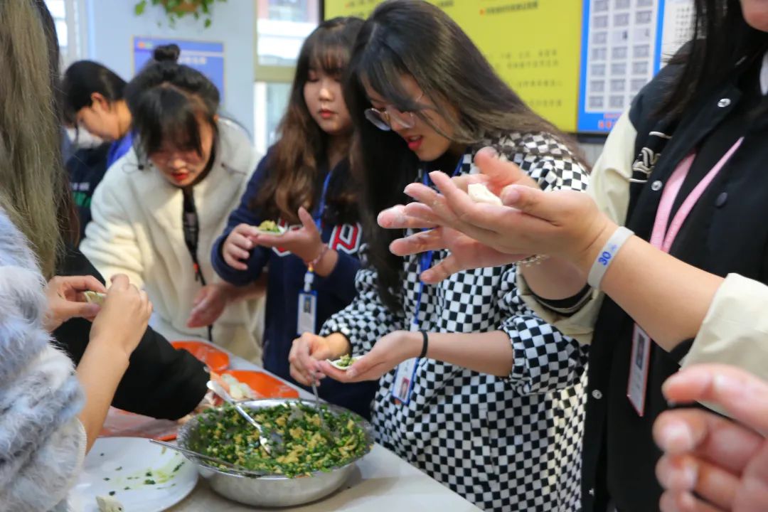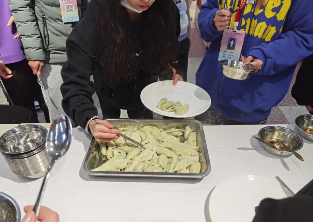 活动中,大伙和面、擀皮儿、准备馅料,包水饺、汤圆,分工明确,一盘盘形态各异的饺子呈现在了同学们的面前,大家一起其乐融融,分享劳动乐趣,共享劳动果实。