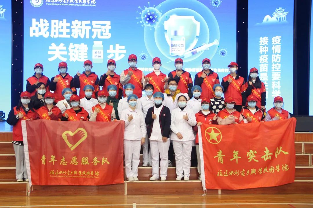 我院青年突击队员们每日早上提前到达现场布场后,积极配合医护人员做好相关准备工作,组织师生员工按照流程有序排队、登记、接种、留观、离场,并耐心细致地解答在场人员的咨询。