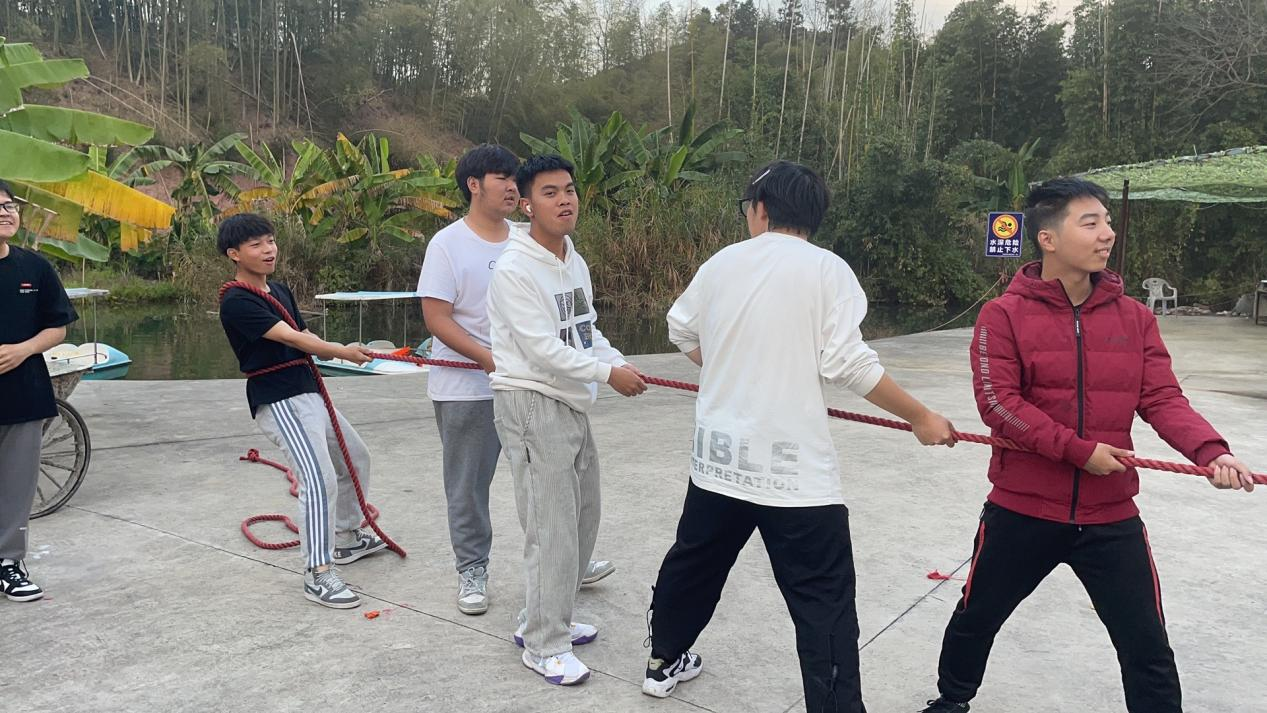 在素质拓展环节,同学们打破班级建制随机组队,进行了“撕名牌”“踩气球”“拔河”“卡牌”“你画我猜”等比赛项目,大家在轻松活跃的氛围中有了更深层次的接触,促进彼此之间的了解,增强了同学们密切协同、克服困难的团队精神。