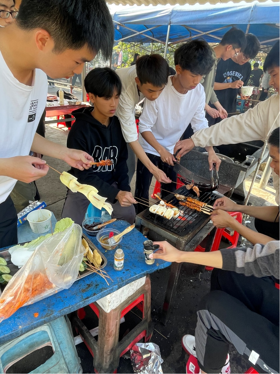 全体成员按照分组参观地质博物馆后,通过分组的形式开展厨艺大比拼。每组同学各有分工,有“烧烤小分队”“饺子小分队”“烹饪小分队”,还有“气氛组”负责活跃氛围。通过丰富多彩的饮食文化活动,营造了健康积极素质拓展氛围,两个支部的同学之间有了更深层次了解,促进班级同学共同进步。