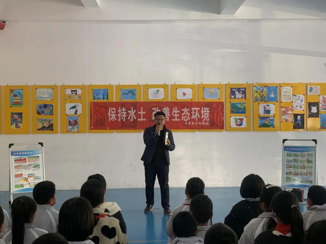 今年12月10日是福建省第8个水土保持宣传日。活动当日,水利科技社组织水宝护河卫士队师生联合永安市水利局一同前往永安市北塔小学开展主题为“保持水土 改善生态环境”的宣传活动。本次活动在水利工程系申景昕博士和永安市河长办林丽的带领下,通过水利知识科普课堂,实验小游戏,发放宣传材料等方式开展宣传活动。