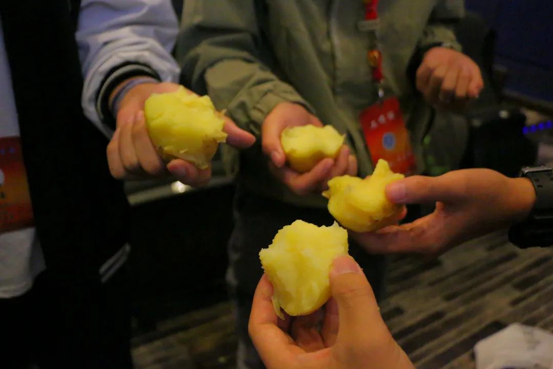 观影结束后在影院组织同学们吃冻土豆,体验革命先辈们艰苦卓绝的奋斗历程。