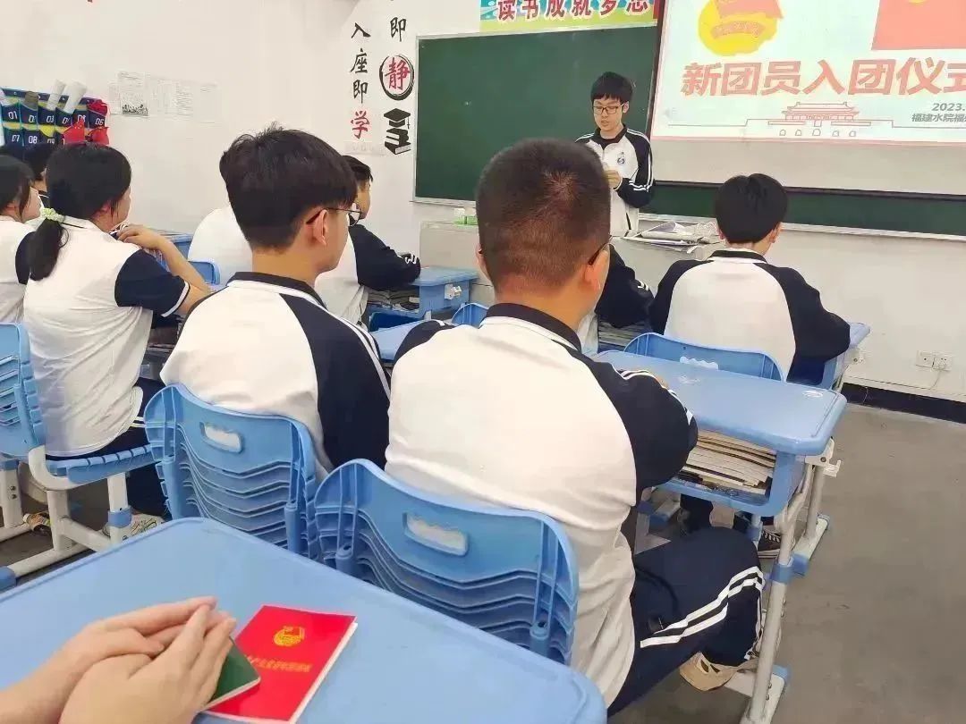 在宣誓环节,由福州校区团支书林忻同学领誓,新团员向鲜艳的团旗庄严宣誓,向团组织表明了自己的决心,牢记团的誓言,激发做一名共青团员的光荣感和责任感,增强为共产主义奋斗的信念。