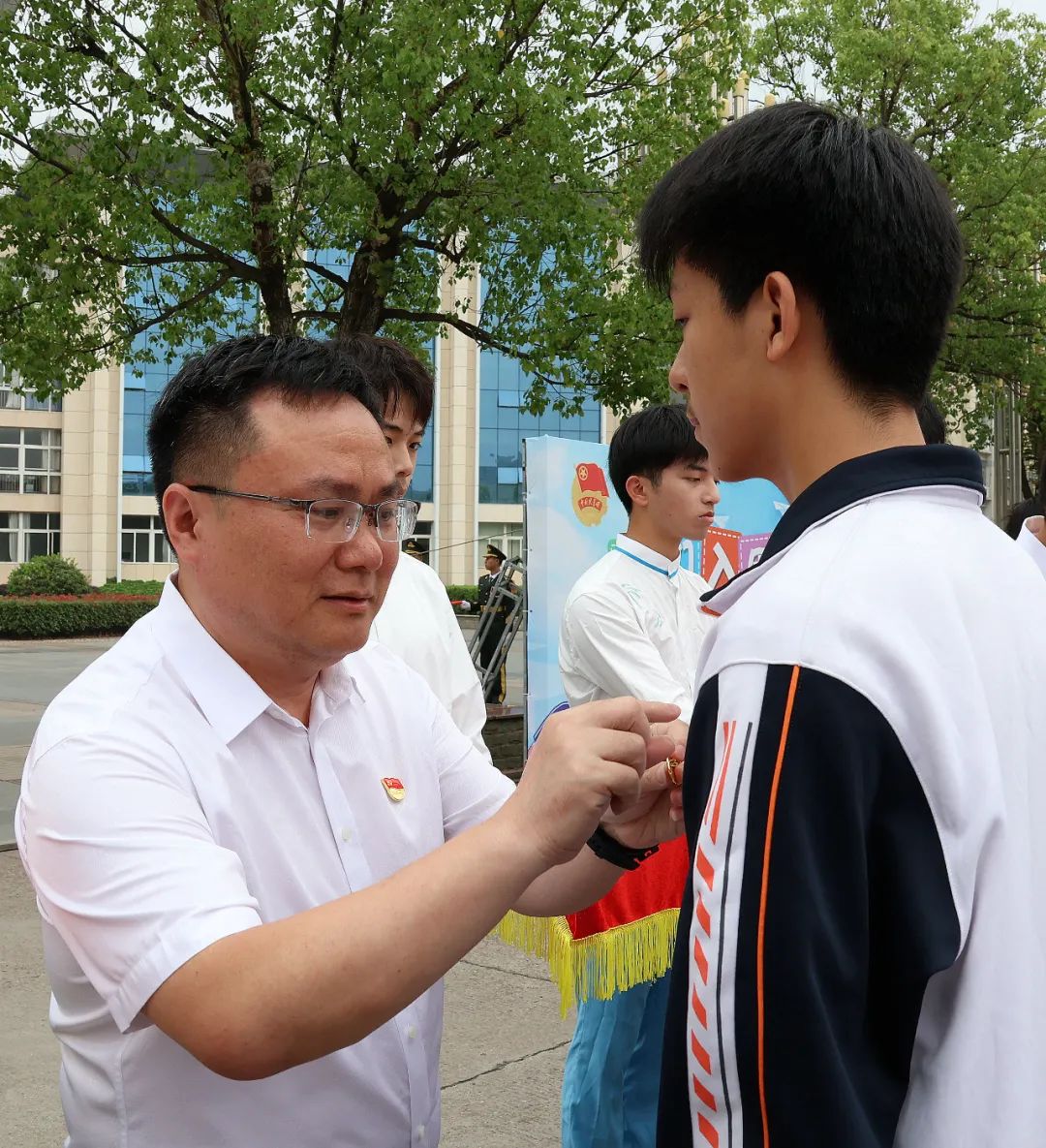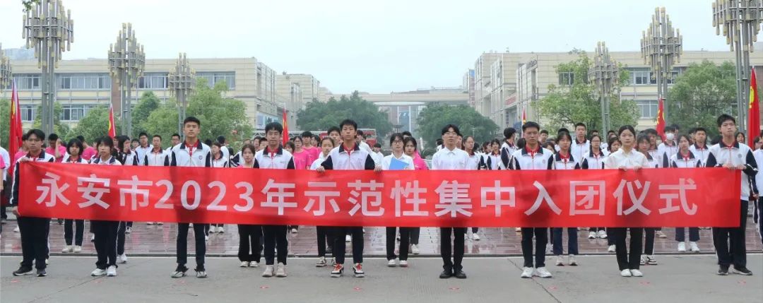 4月29日上午,由永安团市委和学校团委联合举办的“学习二十大 永远跟党走 奋进新征程”2023年示范性集中入团仪式在永安市政府广场顺利举行,永安市委书记傅天宝出席活动并讲话。学校校长孙学耕,永安市委常委、统战部部长张凤玺以及初高中校、中高职院校新老团员代表、少先队员代表等300名青少年现场参加活动,永安市各级团组织通过视频直播一起参与活动。