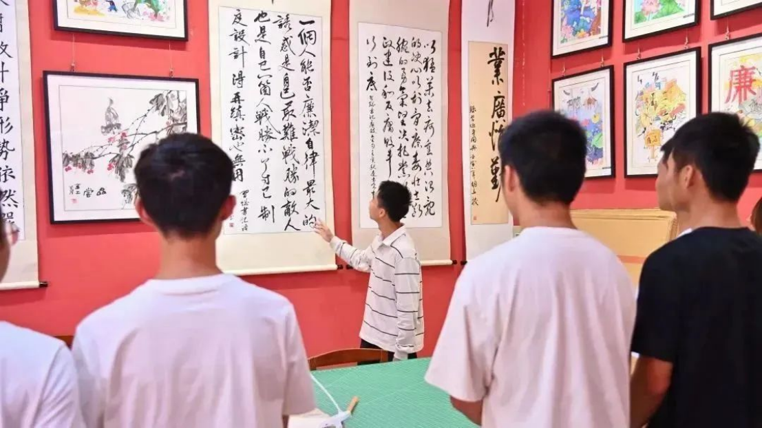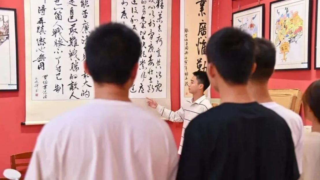 同学们参观了书画室内陈列的作品,并进行了生动的讲解。一幅幅精美的作品或飘逸或工整,吸引同学们驻足观看,让大家领略到了中华书法艺术的独特魅力。支部成员陈沛涵同学说道:“以前我对书法并没有太多的了解,今天我不仅学会了书写的一些基本知识,更重要的是对中国书法的深厚历史和文化有了更进一步的了解。”