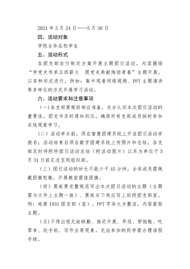 《关于开展“学党史传承五四薪火 跟党走奉献绚丽青春”主题团日活动的通知》