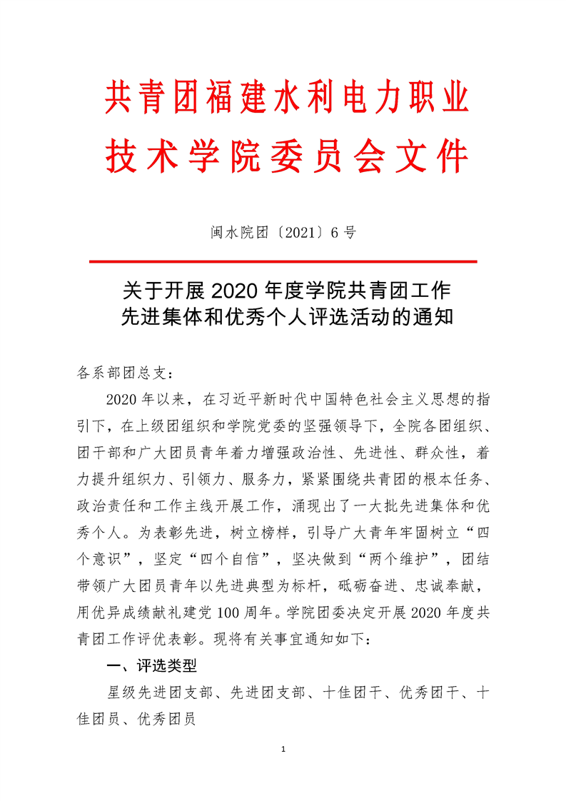 《关于开展2020年度学院共青团工作先进集体和优秀个人评选活动的通知》