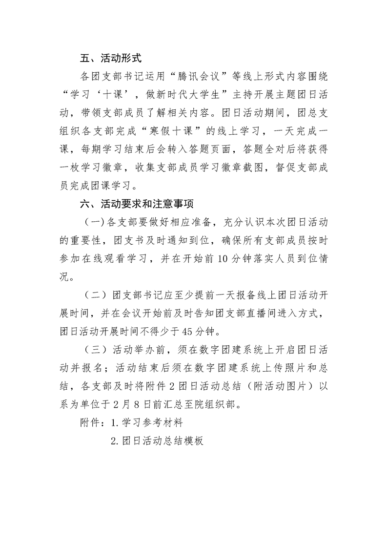 《关于开展“学习‘寒假十课’,做新时代大学生”主题团日活动的通知》