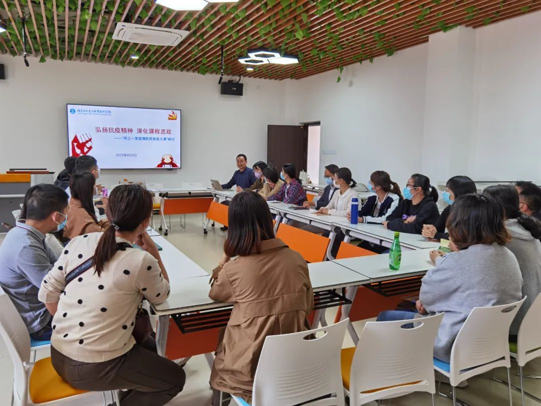 准备参加省教学能力比赛的老师们与马克思主义学院开展专题研讨。就如何润物无声,将大力弘扬伟大抗疫精神、北京冬奥精神更好地融入专业课程教学中,老师们进行了深入交流,表示收看直播课是又一次生动深刻的教育,将不忘立德树人初心,履行好教书育人职责,特别是要将弘扬伟大的抗疫精神融入到课程教学中,引导学生向上向善。