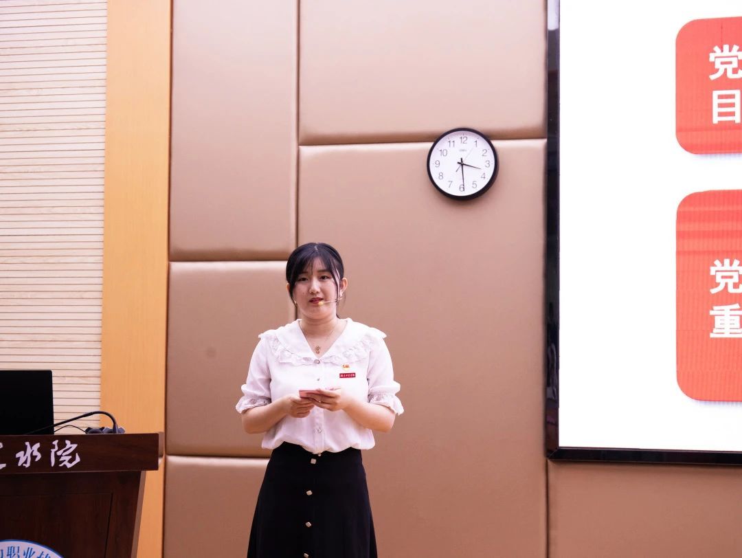 百年党史优秀微党课汇报展示观摩会上,6名党员立足不同历史背景,为现场师生带来了精彩纷呈的微党课汇报展示。机关党总支李琳以《长征精神永放光芒》为题,回顾了发生在长征路上的红色记忆;水利工程系党总支张炜华以《新中国首次远洋科学考察》为题,回顾了科研工作者艰苦卓绝的科考之路;电力工程系党总支潘凤红以《坚持‘一国两制’,推进祖国统一》为题,讲述“一国两制”基本方略形成及伟大实践;信息工程系党总支叶恒以《从‘一部半电台’崛起的红色通信》为题,追忆一道道隐蔽战线上永不消逝的电波;建筑工程系邓婷婷以《清香如兰,辉映北川》为题,讲述原北川副县长兰辉保持共产党员鲜红底色的感人故事;机电工程系黄丽晶以《最美建设者英雄的团队》为题,再现了两山医院施工单位党组织的战“疫”场景。6位党员从一个个小故事展示了中国共产党“为人民服务”宗旨和内涵丰富的精神谱系,见微知著、引人入胜。
