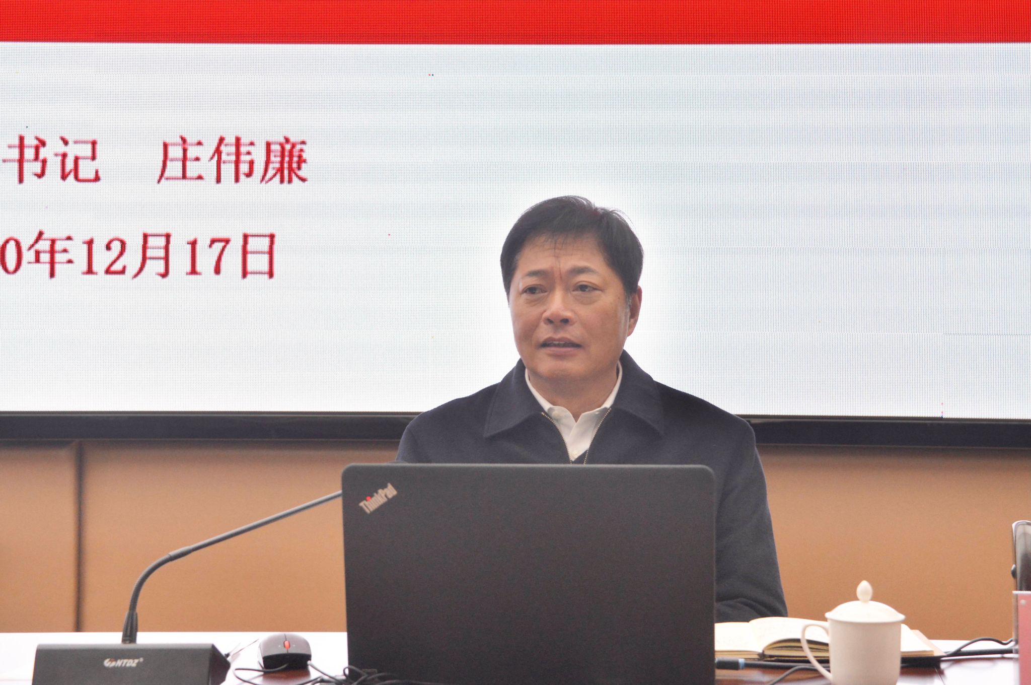 庄伟廉以《乘风破浪 砥砺新征程》为题,从新阶段与新目标、新理念与新部署、新变化与新格局三个方面,系统解读了党的十九届五中全会精神,深刻阐释了习近平总书记在全会上提出的一系列新思想新观点新论断新要求,对实现“十四五”规划和2035年远景目标进行了深入浅出、精辟的讲解。