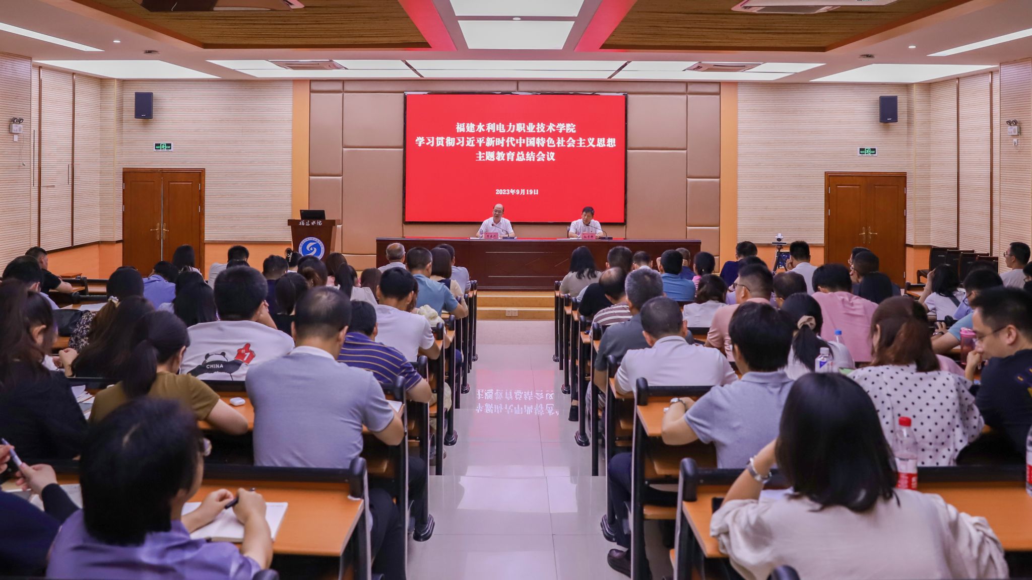 在家校领导,副科级及以上干部,机关、教辅部门、马克思主义学院全体党员,二级学院总支委员、党支部书记及支委,主题教育领导小组办公室全体成员参加会议。