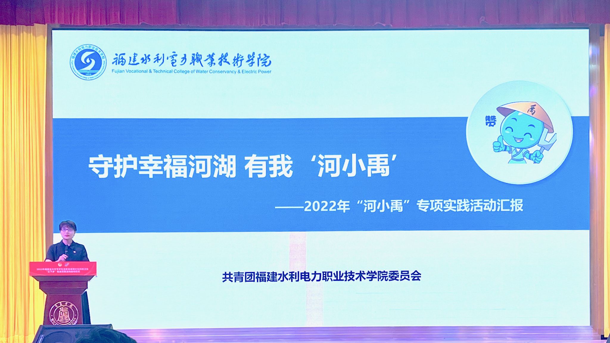 启动仪式上,我校团委就2022年“河小禹”专项行动作专题汇报。2022年学校作为“河小禹”专项行动的牵头院校,共组建22支护河队伍参与专项活动,志愿者身影遍八闽大地,相关活动事迹受到多家主流媒体报道,并获得2022年福建省暑期“三下乡”社会实践活动省级先进单位等16项荣誉。今年3月,学校还应邀参加福建新闻广播直播访谈节目,分享团队24年如一日坚持“科技+公益”保护美丽母亲河的生动故事与绿色实践。