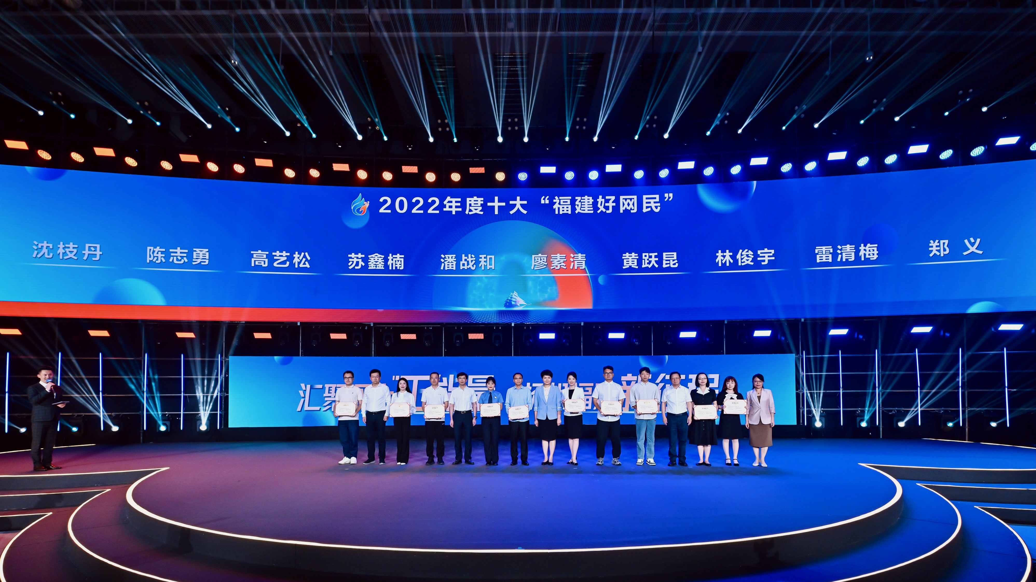 5月24日,由省委宣传部指导、省委网信办主办的首届福建省网络文化节在厦门开幕。活动现场举行了2022年度十大“福建好网民”颁奖仪式,省委宣传部部务会议成员、省委文明办主任李琦,省委网信办副主任黄逸群,省教育厅副厅长吴伟平,团省委副书记吴雪,省妇联党组成员、副主席陈红为获奖人员颁奖。
