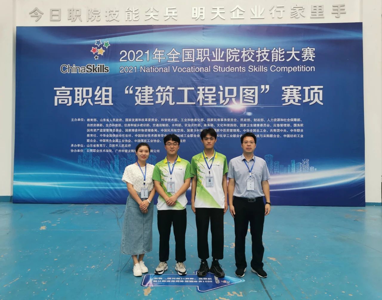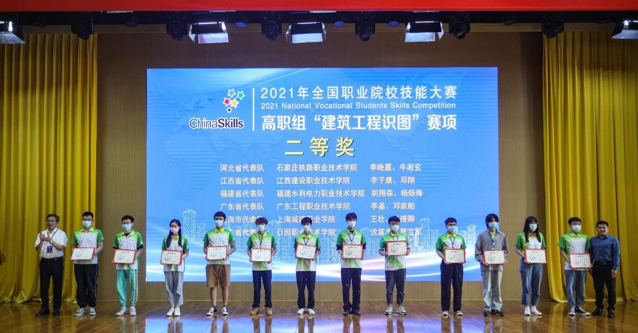 近日,2021年全国职业院校技能大赛高职组“建筑工程识图”赛项在山东日照顺利举办。本次赛项由教育部等36部门主办,山东省教育厅和日照市人民政府联合承办,来自各省、自治区、直辖市、新疆生产建设兵团的32个代表队64名选手参加。建筑工程系范海峥、郑元锋老师指导,胡翔森(造价1936班)、杨焙烽(建筑1931班)两位学生组成福建省唯一一支代表队,以全国第六名的总成绩荣获建筑工程识图赛项二等奖。
