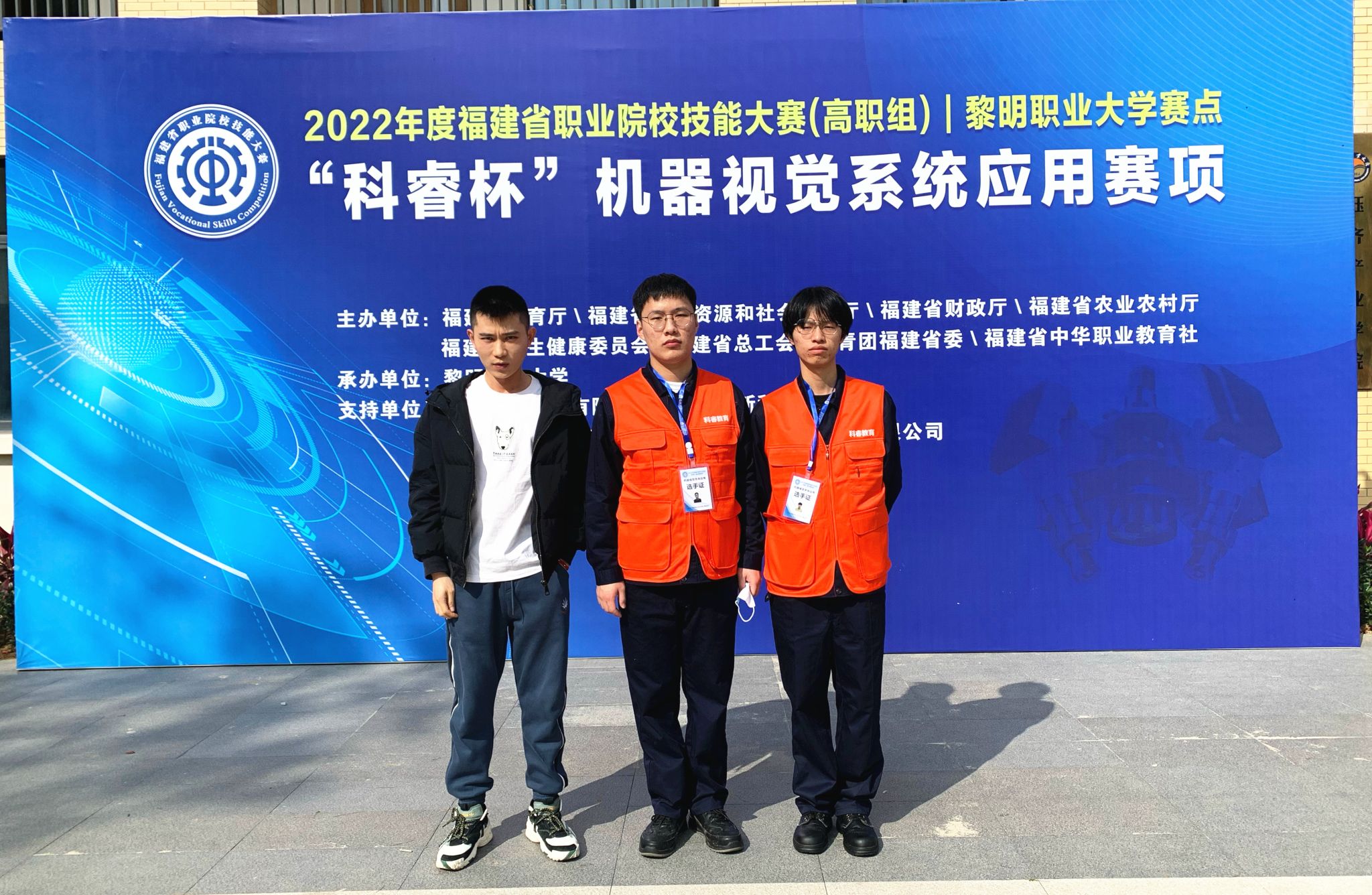 12月25日~26日,2022年福建省职业院校技能大赛(高职组)“机器视觉系统应用”赛项在黎明职业大学举行,本次比赛共有来自全省的14个代表队参加。我院吴恩辉、梁伟林两位同学组成的参赛团队,在罗钶老师的精心指导下沉着应赛,经过4小时的激烈角逐,最终获得团体二等奖。