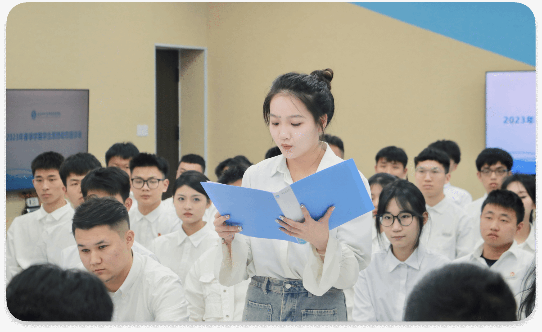黄瑞梅在总结讲话时赞扬了同学们积极进取的学习生活状态和健康向上的精神风貌,肯定了同学们对学习生活、学校发展等话题的密切关注和深入思考,解答了同学们的相关疑惑,并表示学校一定会高度重视同学们所提意见建议,及时梳理解决,做细做实各项工作,全力为同学们的成长成才提供有效保障。同时,她寄语同学们要继续关注个人学习成长、努力投身社会实践,用良好的青春形象带动身边人,争做有追求有理想的时代引领者,让青春在全面建设社会主义现代化国家的火热实践中绽放绚丽之花。