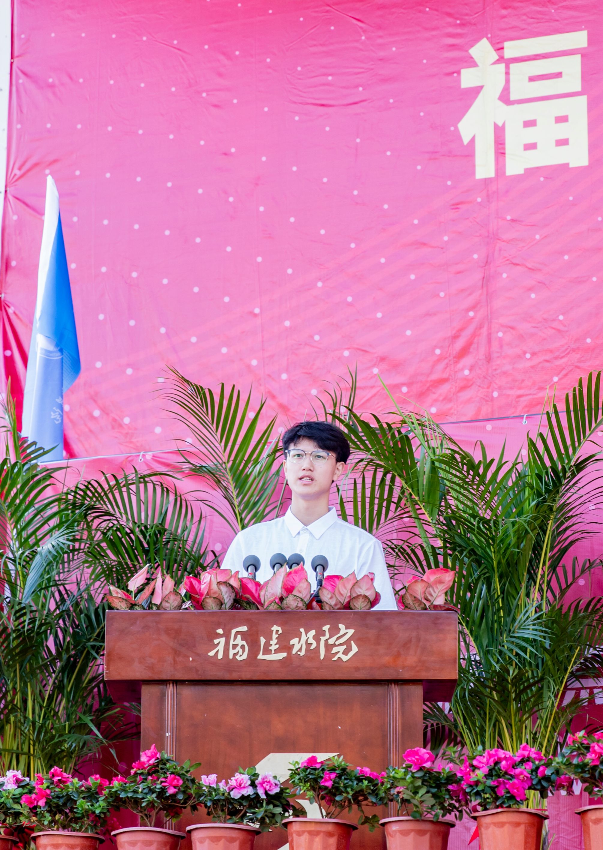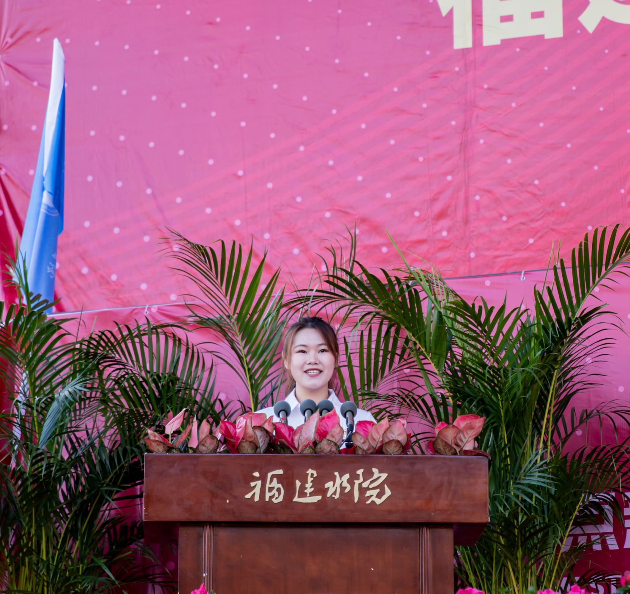 自动化工程学院詹昊栋(机电一体化2234)作为新生代表讲述了自己初到水院感受的满满温暖,号召同学们要以青春之我、奋斗之我,为民族复兴铺路架桥,为祖国建设添砖加瓦。