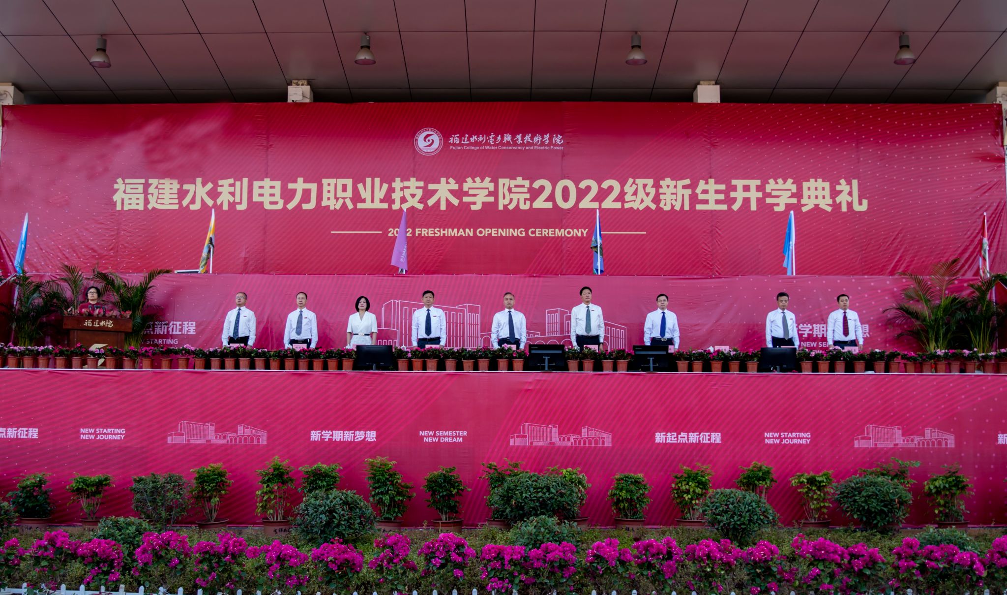 9月17日上午,学院2022级新生开学典礼在田径场隆重举行。省水利厅副厅长丘汀萌,省水利厅人事处处长许瑞鹏,省水利水电勘测设计研究院信息处处长、省水利学会副秘书长李玉,学院党政领导班子全体成员出席开学典礼。典礼由学院党委副书记黄瑞梅主持。