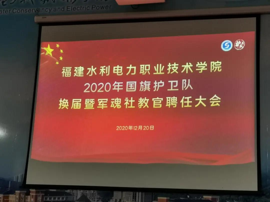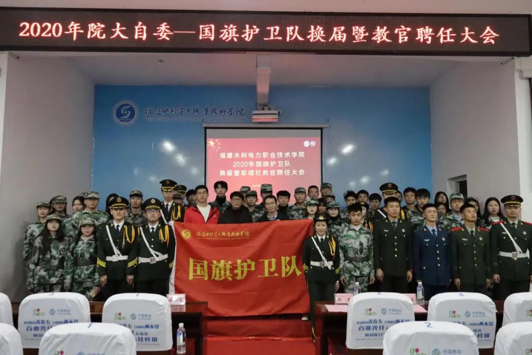 12月20日晚,院大自委国旗护卫队在禹兴园3-112(第二学术报告厅)隆重举行了换届暨军魂社教官聘任大会,学生工作部相关老师,院大自委、军魂社、龙狮社干部代表和国旗护卫队全体队员参加了大会。
