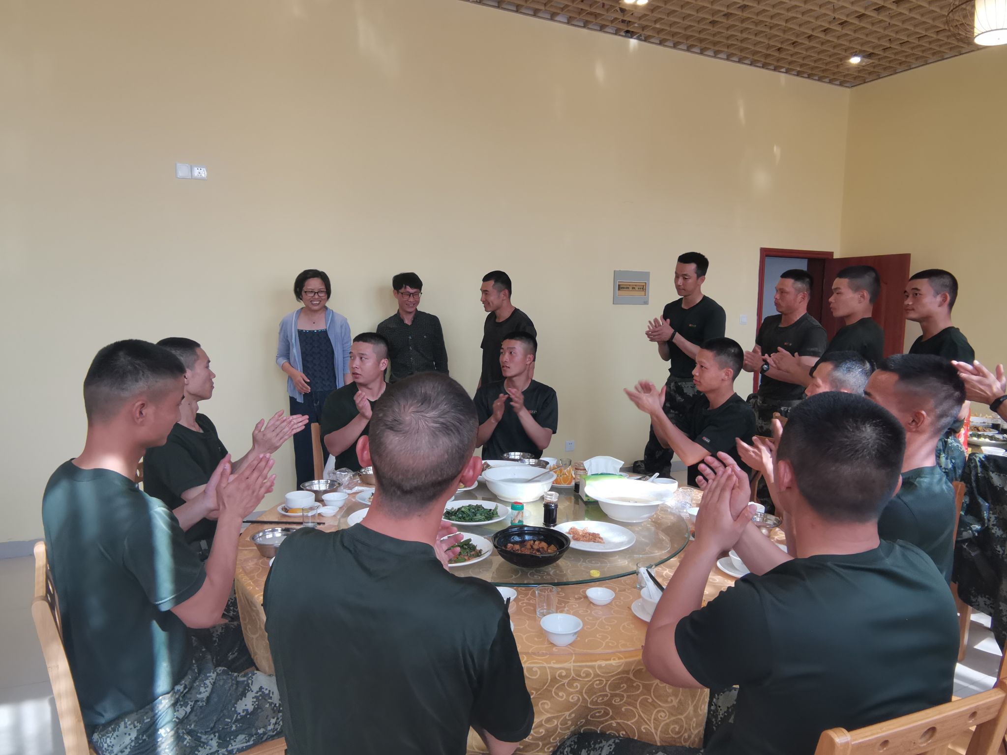 在慰问中,黄瑞梅与教官们亲切交谈,深切问询了教官们的身体及饮食状况,同时感谢教官们对学院军训工作给予的大力支持,以及教官们的辛勤付出。她指出,教官们在新生军训工作中充分展示了革命军人的光荣传统和优良作风,不论是在军训场上,还是在生活细节上,都体现了新时代革命军人的优良品质。并希望全体教官们将勤俭节约教育融入到学生的军训活动中,为同学们上好勤俭节约品德课,引导同学们在学习生活中,自觉养成“厉行节约、反对浪费”的良好习惯。