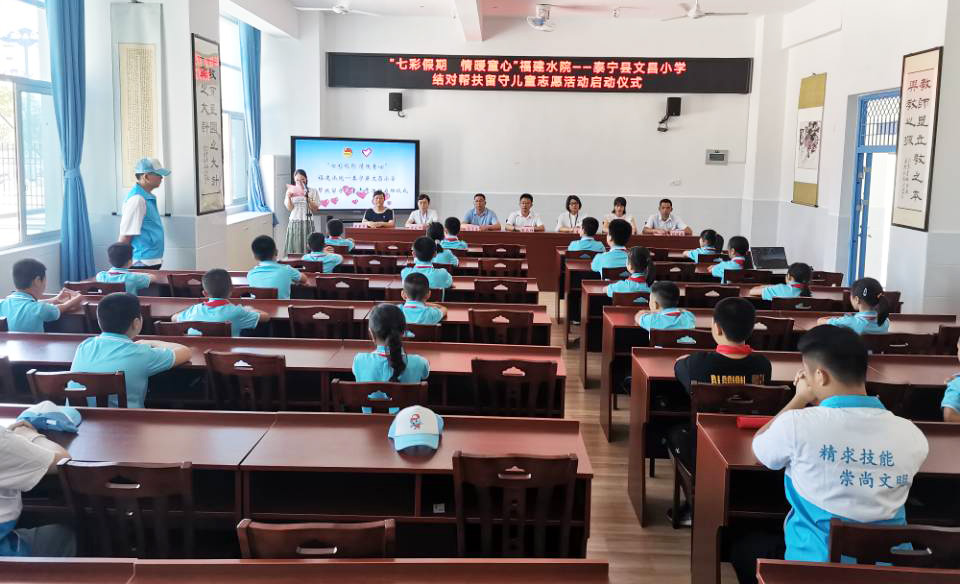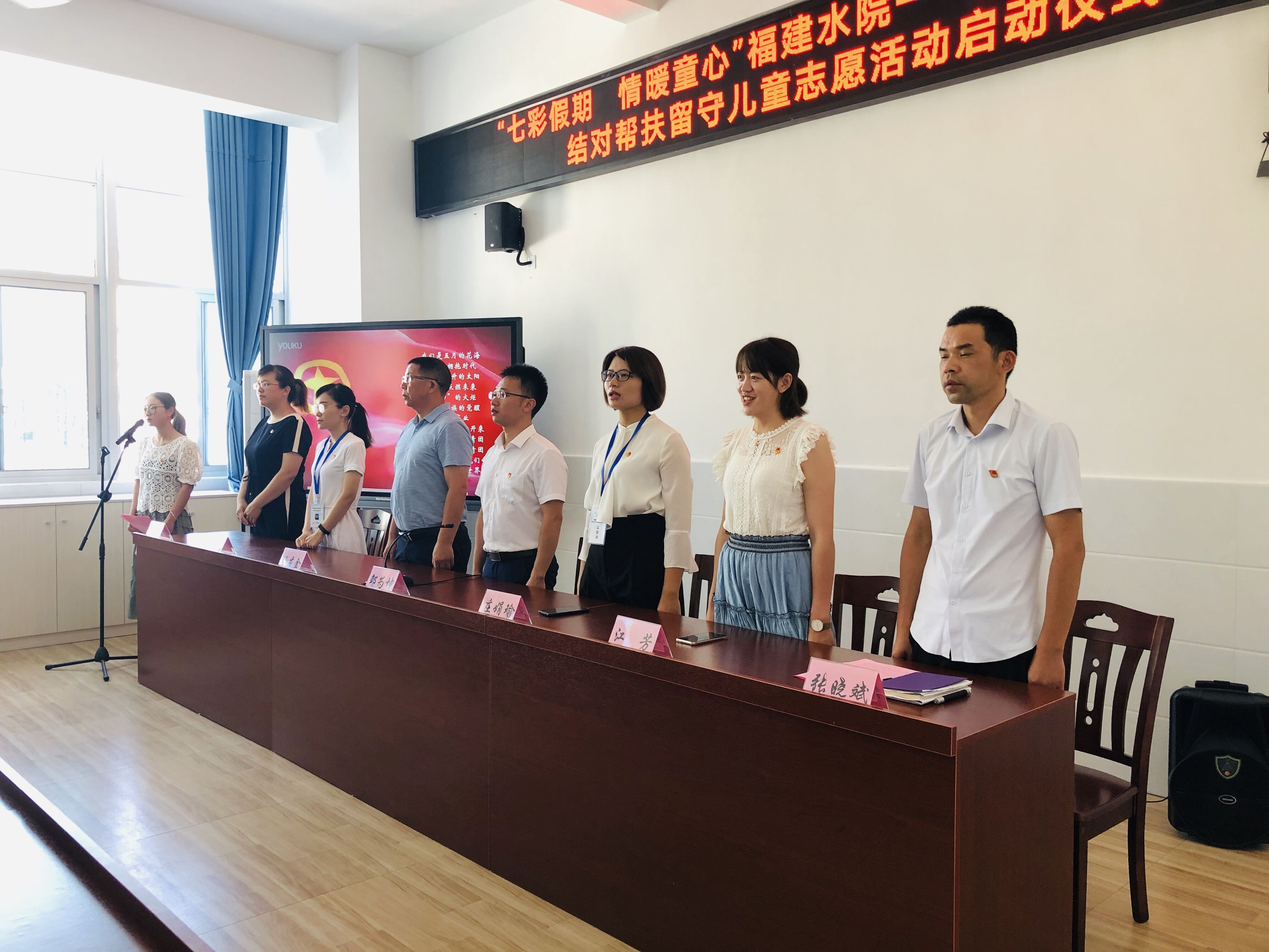 8月14日,“七彩假期 情暖童心”福建水院与泰宁文昌小学结对关爱留守儿童帮扶志愿活动正式启动。启动仪式在文昌小学举行,泰宁县团县委书记邹为坤,团县委副书记江芳,福建水院团委副书记、学工处副处长庄娟瑜,泰宁县教育局汤应金股长、学院团委相关老师、文昌小学张晓斌、黄荣芳副校长以及水院的志愿者们和文昌小学21名留守儿童代表参加了活动。