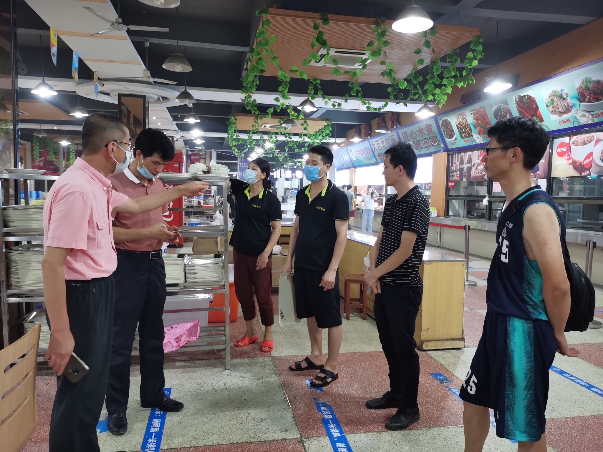 杨元挺一行每走到一处,都对各个环节进行全面细致检查,强调后勤处要对食堂、超市严把物价关,要求物业人员、食堂经理、有关部门人员要在放假前做好各项工作,营造安全稳定的学习生活环境,并在暑假来临时确保学生安全有序离校。